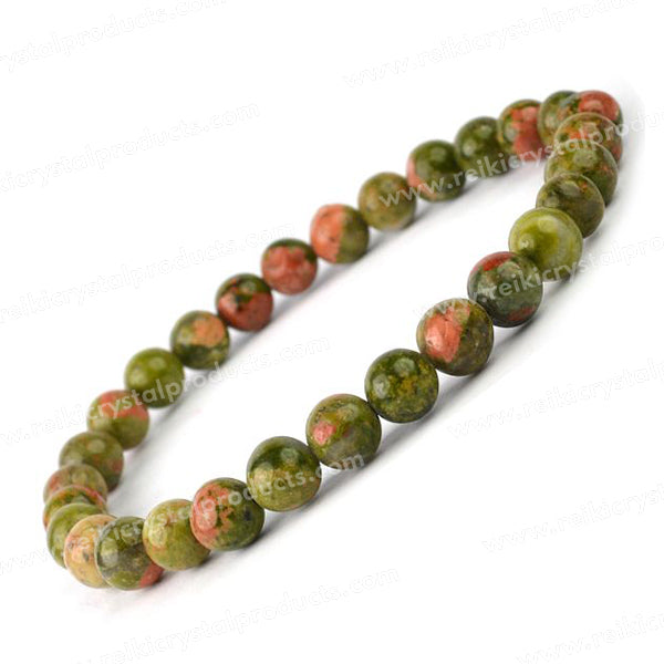 * Stretchable Elastic Handmade Unakite Bracelet | Diameter : 6.3 cm. | Stone Size - 6 mm. Natural Healing Stone Bracelet for Reiki Healing, Crystal Healing, Numerology, Tarot, Astrology, Vastu, Angle Healing & Feng Shui