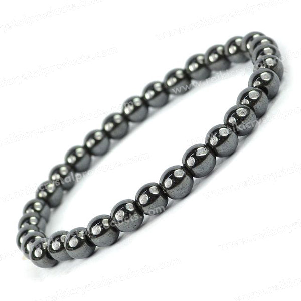* Stretchable Elastic Handmade Hematite Bracelet | Diameter : 6.3 cm. | Shape - Natural | Stone Size – 6 mm
