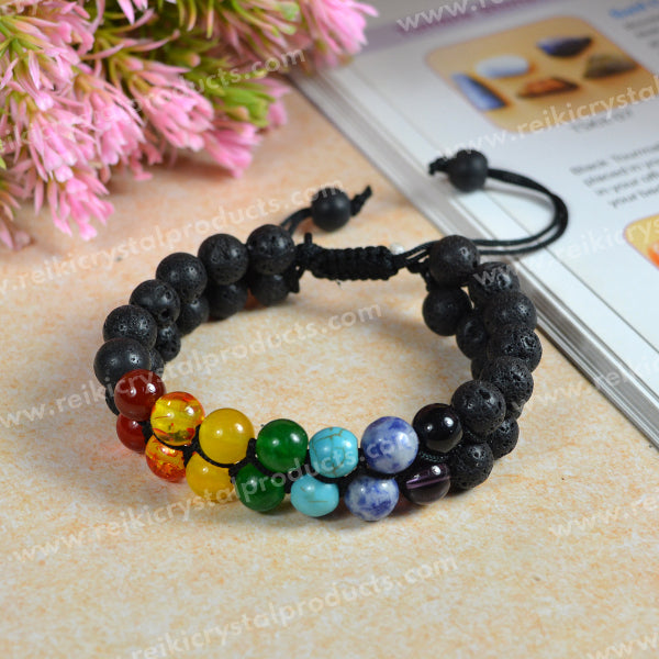* Handmade Adjustable Thread 7 Chakra With Lava Bracelet | Diameter : 6.3 cm. | Stone Size – 8 mm | Shape - Round | Charged By Reiki Grand Master & Vastu Expert