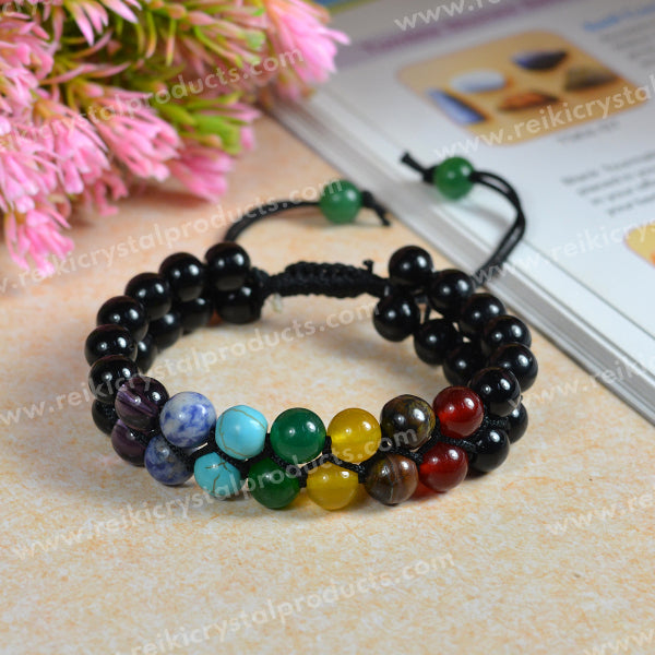 Handmade Adjustable Thread 7 Chaklra Bracelet | Diameter : 6.3 cm. | Stone Size – 8 mm | Shape - Round | Charged By Reiki Grand Master & Vastu Expert