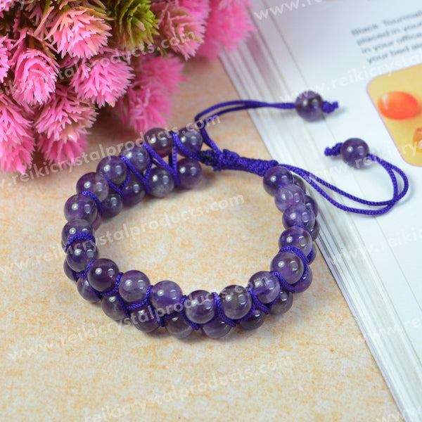 * An amethyst bracelet is a piece of jewelry often worn to promote spiritual awareness, calmness, and protection from negative energies. It's popular for both its aesthetic beauty and its symbolic connection to clarity and balance.