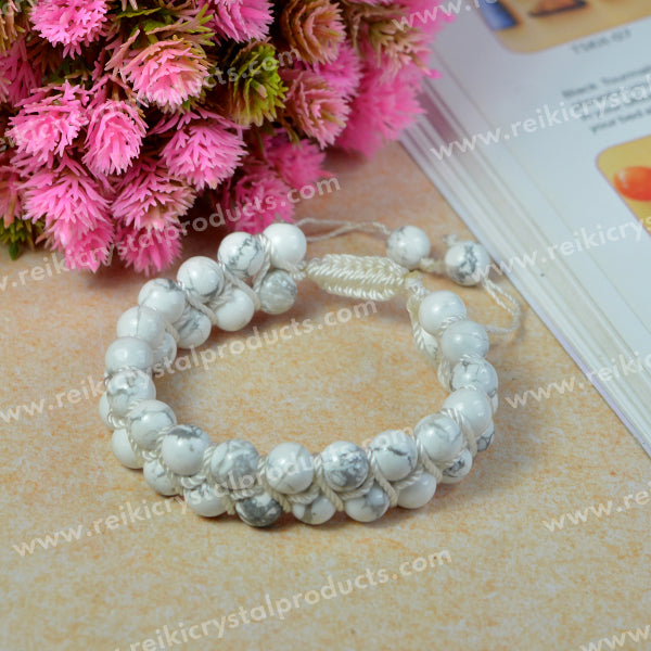 * Handmade Adjustable Thread Howlite Bracelet | Diameter : 6.3 cm. | Stone Size – 8 mm | Shape - Round | Charged By Reiki Grand Master & Vastu Expert