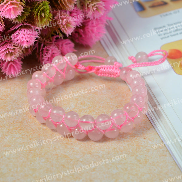 * A rose quartz bracelet symbolizing love, compassion, and emotional healing. It is often worn to attract love, foster self-love, and promote harmony in relationships. The soft pink color adds a soothing and gentle energy to its wearer.