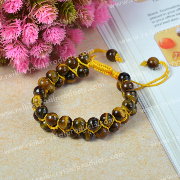 * A tiger's eye bracelet is known for their striking golden to brown bands. This stone is often associated with protection, grounding, and clarity, promoting mental focus and confidence. Wearing a tiger's eye bracelet is believed to enhance courage, balance emotions, and attract good fortune while providing a shield against negative energies. Its unique, shimmering appearance adds a bold touch to any jewelry collection.
