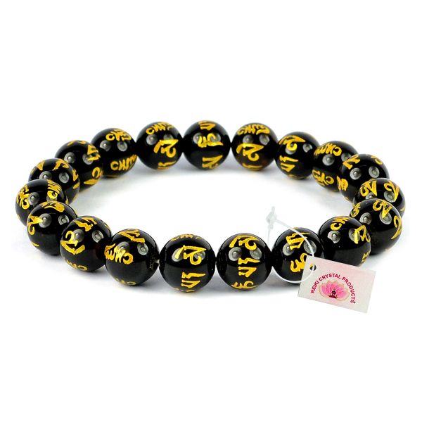 Stretchable Elastic Handmade Om Mani Reiki Bracelet | Diameter: 6.3 cm. | Stone Size – 10 mm | Shape - Round | Pack of 1 Pc