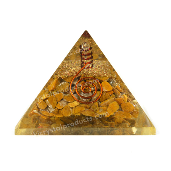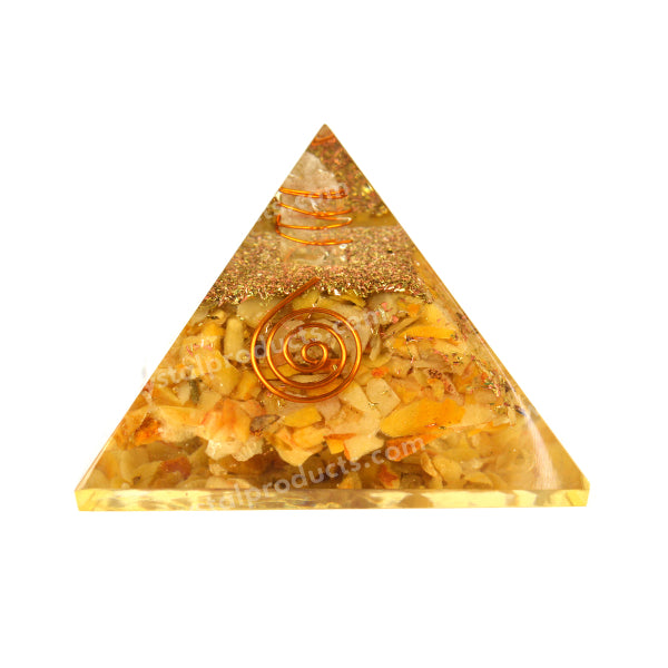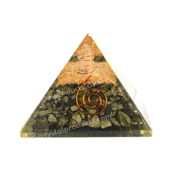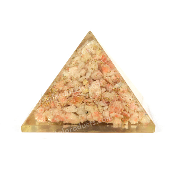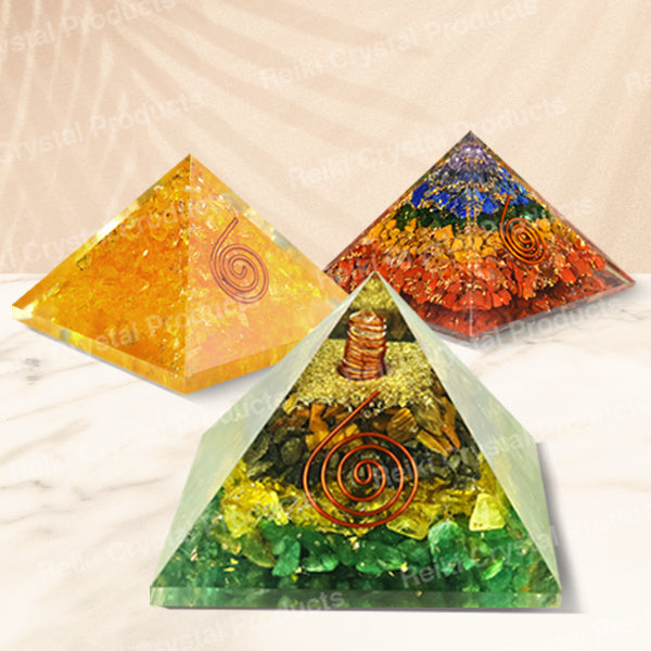 * Natural Orgone Pyramid Size 70 mm.* Energy Transformation: Crafted with a mix of resin, crystals, and metal shavings, the Orgone Pyramid is believed to convert negative energy into positive, fostering a more balanced and harmonious environment.* Sacred Geometry: The pyramid shape, a symbol of sacred geometry, amplifies the energetic properties of the orgonite materials within, creating a powerful focal point for meditation, spiritual practices, or simply as a decorative piece.* Energized by Experienced Reiki Grandmaster.* The pyramid is made from Natural Stones so small holes, crack marks on the surface or inside the stones are often visible.* Note: The crystal pyramid is a spiritual accessory, and its perceived impact is often rooted in personal belief and intention.