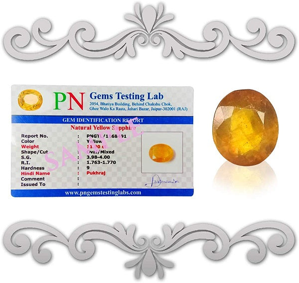 Certification details: Certified By Reputed Gem Testing Lab Yellow Sapphire Pukhraj for Shanni