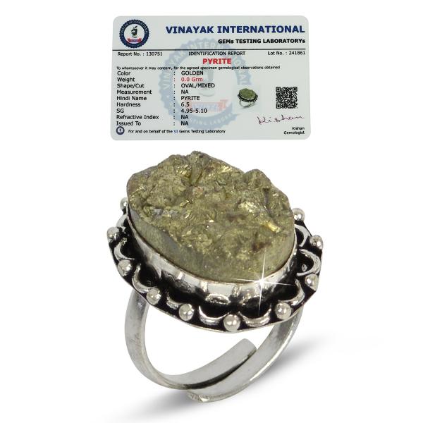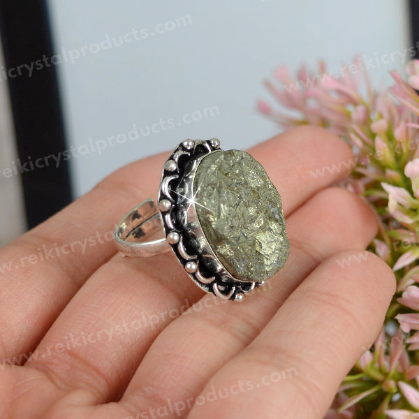 Certified Natural Pyrite Rough Crystal Stone Oval Design Adjustable Ring