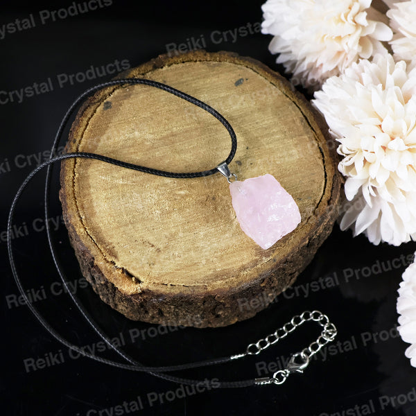 * A rose quartz pendant symbolizing love, compassion, and emotional healing. It is often worn to attract love, foster self-love, and promote harmony in relationships. The soft pink color adds a soothing and gentle energy to its wearer.