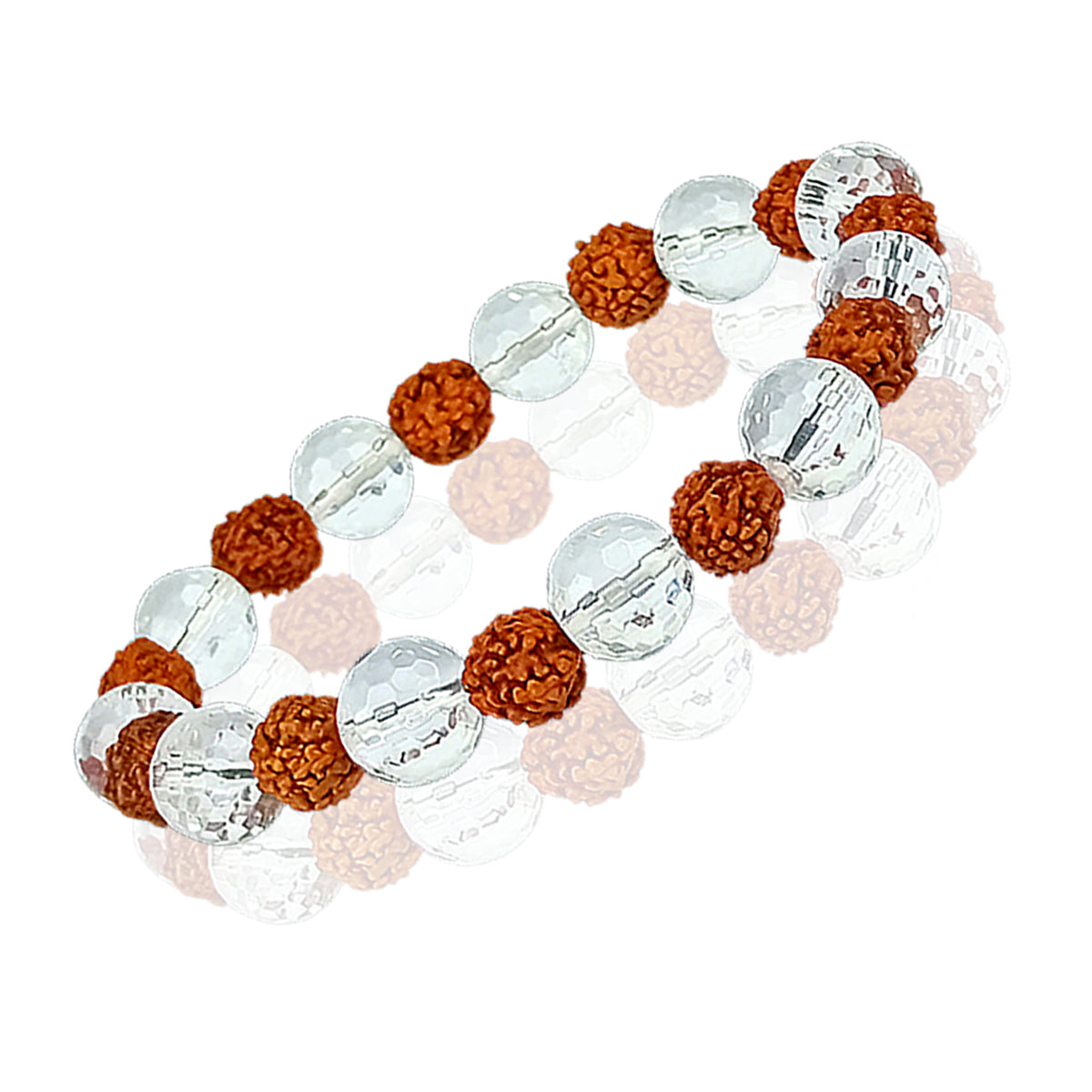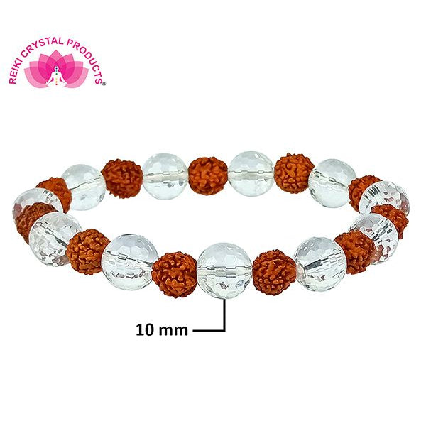 Natural Rudraksha with Clear Quartz (Sphatik) Faceted 10 mm Bracelet