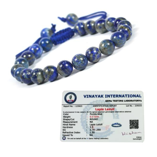 * A lapis lazuli bracelet characterized by their deep blue color and golden flecks of pyrite. This stone is often associated with wisdom, truth, and self-expression, making it a powerful tool for enhancing communication and insight. Lapis lazuli is also believed to promote inner peace, stimulate intellectual ability, and encourage self-awareness, making it a popular choice for those seeking personal and spiritual growth.