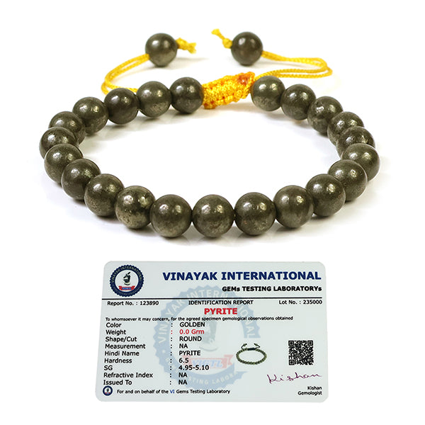* Stretchable Elastic Handmade Natural Crystal Stone Pyrite Bracelet | Diameter : 6.3 cm.| Stone Size – 8 mm | Shape - Round. Charged By Reiki Grand Master & Vastu Expert