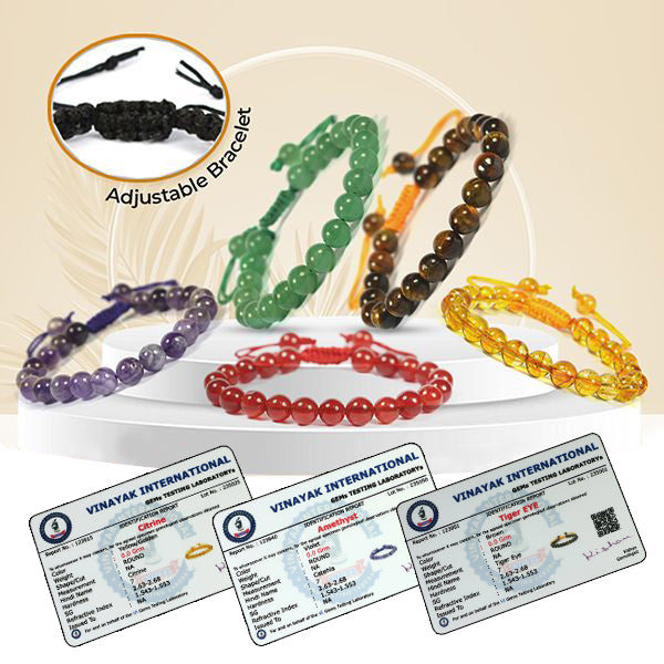* Single Line Stone Macrame Nylon Cord Bracelet | Bead Size - 8 mm | Bead Shape - Round | Handmade Adjustable Bracelet