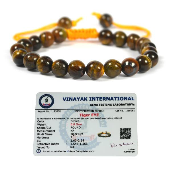 * A tiger's eye bracelet is known for their striking golden to brown bands. This stone is often associated with protection, grounding, and clarity, promoting mental focus and confidence. Wearing a tiger's eye bracelet is believed to enhance courage, balance emotions, and attract good fortune while providing a shield against negative energies. Its unique, shimmering appearance adds a bold touch to any jewelry collection.