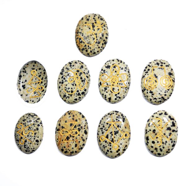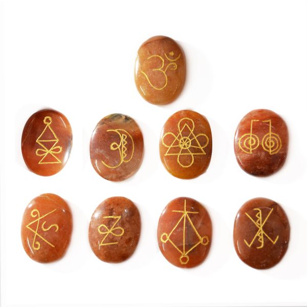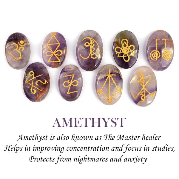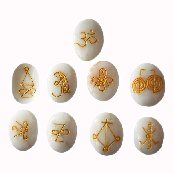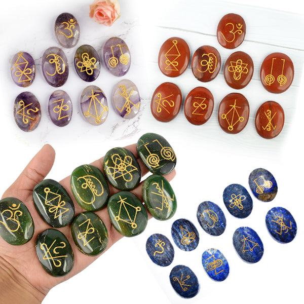 Natural Stone Karuna Reiki (9pc) Set. Natural Healing Karuna Reiki for Reiki Healing, Crystal Healing, Numerology, Tarot, Astrology, Vastu, Angle Healing & Feng Shui. 100% Authentic, Original and Natural Healing Stone / Crystal / Gemstone - small holes, crack marks on the surface or inside the stones are often visible.