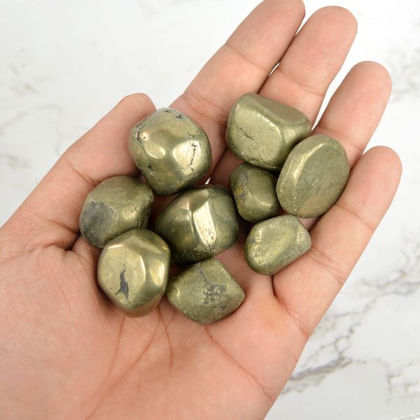 // Immerse yourself in the enchanting world of crystals with our Tumble Stones a collection of polished gemstones that fit snugly in the palm of your hand, each radiating its unique energy and beauty.// Versatile Uses: Reiki Crystal Products Pyrite Tumbles Stone Set can be used for meditation, crystal grids, energy work, or simply as beautiful decorative accents. Their versatility makes them a delightful addition to your spiritual practice.// Natural Beauty: Pyrite Tumble Stones showcase the natural beauty of crystals, enhanced by their smooth, polished surfaces. Each stone is a unique creation, reflecting the colors, patterns, and energies of the earth.// Pocket-Sized Energizers: Compact and portable, these stones are perfect for carrying in your pocket, purse, or pouch, allowing you to carry the positive energy of crystals wherever you go.
