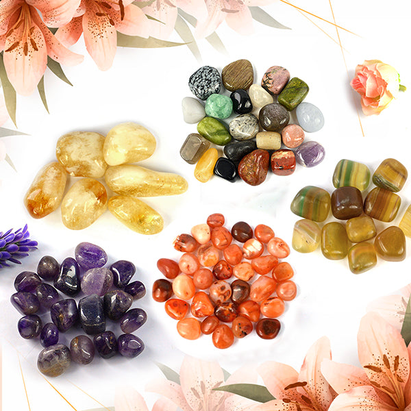 // Natural Crystal Tumble Stone : Weight : 20-25 gram. Pack of 1 pc. // Immerse yourself in the enchanting world of crystals with our Tumble Stones a collection of polished gemstones that fit snugly in the palm of your hand, each radiating its unique energy and beauty.// Versatile Uses: Reiki Crystal Products Natural Tumbles Stone Set can be used for meditation, crystal grids, energy work, or simply as beautiful decorative accents. Their versatility makes them a delightful addition to your spiritual practice.// Natural Beauty: Natural Tumble Stones showcase the natural beauty of crystals, enhanced by their smooth, polished surfaces. Each stone is a unique creation, reflecting the colors, patterns, and energies of the earth.// Pocket-Sized Energizers: Compact and portable, these stones are perfect for carrying in your pocket, purse, or pouch, allowing you to carry the positive energy of crystals wherever you go