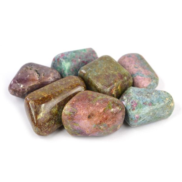 // Immerse yourself in the enchanting world of crystals with our Tumble Stones a collection of polished gemstones that fit snugly in the palm of your hand, each radiating its unique energy and beauty.// Versatile Uses: Reiki Crystal Products Ruby Kyanite Tumbles Stone Set can be used for meditation, crystal grids, energy work, or simply as beautiful decorative accents. Their versatility makes them a delightful addition to your spiritual practice.// Natural Beauty: Ruby Kyanite Tumble Stones showcase the natural beauty of crystals, enhanced by their smooth, polished surfaces. Each stone is a unique creation, reflecting the colors, patterns, and energies of the earth.// Pocket-Sized Energizers: Compact and portable, these stones are perfect for carrying in your pocket, purse, or pouch, allowing you to carry the positive energy of crystals wherever you go.